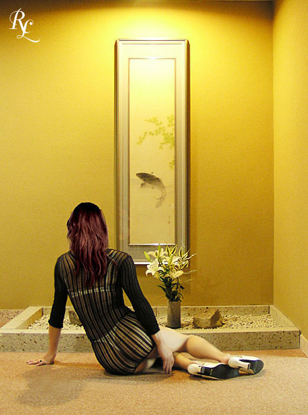 画を鑑賞する女 いや〜、のっけから自分で創っていてこんな事を言うのも何だけど…… ウィッグを付けないと絵にならないからと、付けてみたものの 『変!』『くすぐったい!』『他人みたい!』 絵柄的には日本画と鑑賞する自分を一つの絵にしてしまい、 もう一人の自分が後ろからそれを見ているような感じなんだけど、 そこに居るのは紛れも無い自分なのに、自分のような自分ではないような。 それは今まで味わったことのない戸惑。きっとウィッグのせいなんだね。 今回は着物ではなくシースルーのボデコンで味わう日本の侘びと寂〜 悲しい女が演じました〜(笑) junkoちゃん?着物の別バージョンは次回ね。
