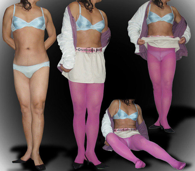 若作り・・こんにちは。皆さんの様なセクシー衣装を持っていないので、熟女ですがマイクロミニ&カラータイツと今風カジュアルギャルに挑戦しました。無謀ですね(笑)でもモコモコブーツも履きたかったなぁ・・・